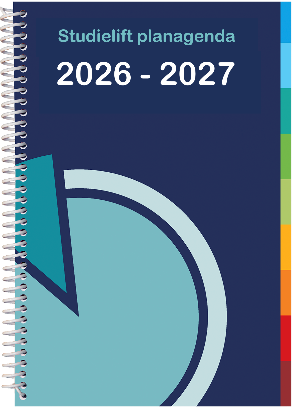 Studielift Planagenda – Het vertrouwde formaat van al onze boeken en de Studielift planner, namelijk 16 x 23,5 cm, hebben we aangehouden voor de basisversie. Handzaam met voldoende ruimte om al het huiswerk en de daarbij behorende planning te noteren.